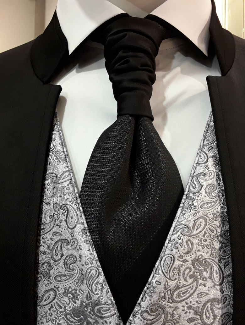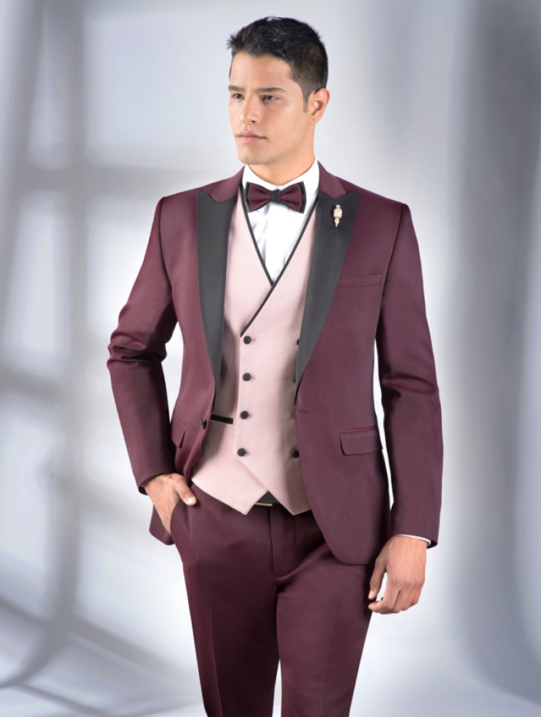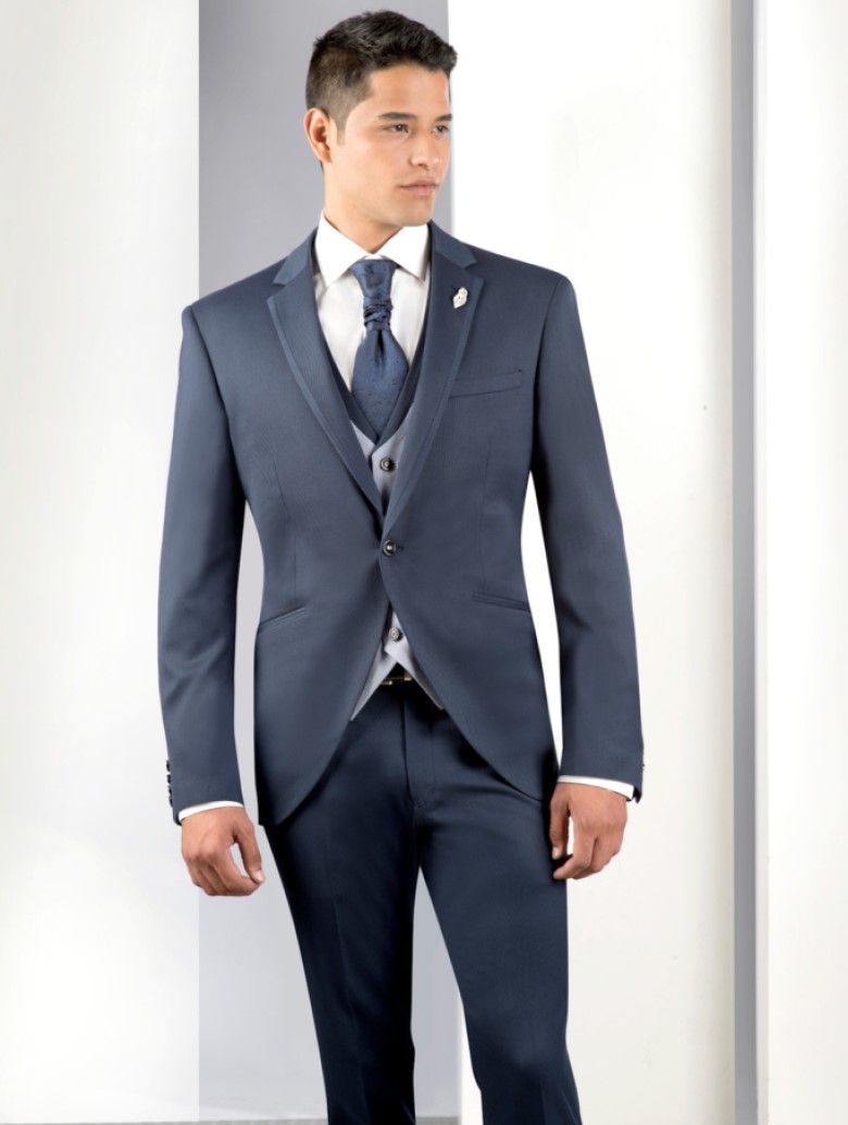 Trajes con solapa combinada o trajes sin solapa con chaleco a juego.